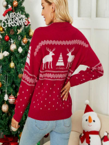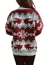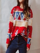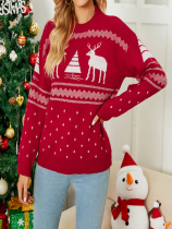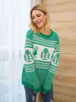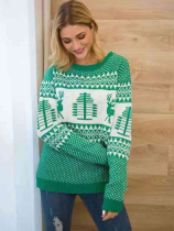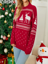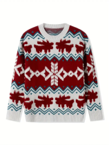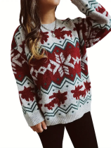 ZINNIA "Women's Round Neck Long Sleeve Sweater - Casual Plus Size Top with Deer, Christmas Tree & Geometric Pattern for Comfy Commuting – Stylish Winter Apparel"