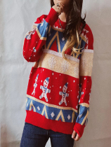 ZINNIA Women’s Geometric Snowman Print Sweater - Plus Size, Long Sleeve Crew Neck Casual Top for Commuting - Stylish and Comfortable Women's Apparel