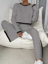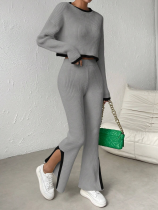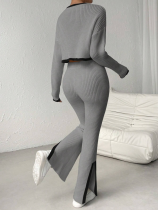 ZINNIA Women's Solid Color Round Neck Long Sleeve Set - Stylish Two-Piece Casual Commuter Outfit for Effortless Elegance
