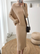ZINNIA Elegant Solid Color High Neck Long Sleeve Women's Two-Piece Outfit - Stylish Tunic Top & Casual Commuter Dress for Effortless Everyday Wear