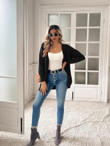 ZINNIA Product Title: Women's Long Sleeve Cardigan with Open Collar - Simple Solid Color Casual Commuter Plus Size Jacket