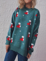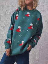 ZINNIA Women's Crew Neck Long Sleeve Sweater - Christmas Socks & Snowflake Pattern Casual Commuter Plus Size Top - Stylish Ladies’ Wear for Holiday Cheer