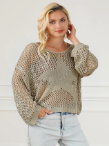 ZINNIA Chic Hollow Star Pattern Round Neck Long Sleeve Women's Top - Stylish Casual Commuter Wear for Every Occasion